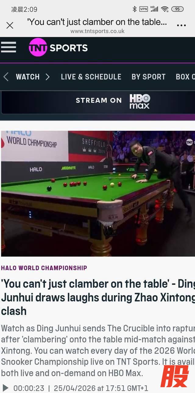 英国tntsports的报道特别称赞了丁俊晖在比赛中的从容自若。在这场备受关注的中国德比中,赵心童经过两个阶段的激烈对抗后以9-7领先。第16局时,丁俊晖竟爬上了球台准备击球,这一幕顿时引发全场观众爆笑,而他自己也露出不好意思的微笑。这种表现显示出他对比赛的享受和放松,并非外界想象中的紧张僵硬。